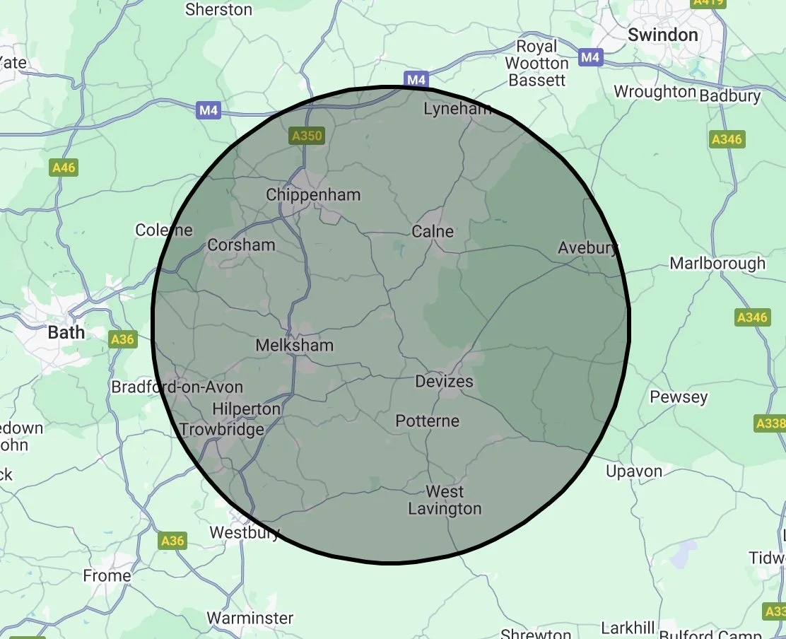 A small mileage charge for visits outside of a 15 mile radius from Bromham, Chippenham.